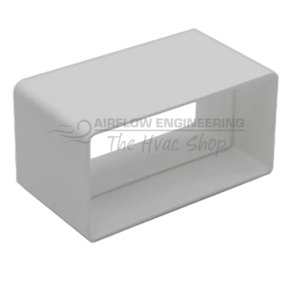 The 110 × 54mm Rectangular Duct Joiner is designed to connect two lengths of flat channel ducting in a straight line. The joiner fits externally, allowing duct lengths to slide into the connector for a secure, aligned connection.